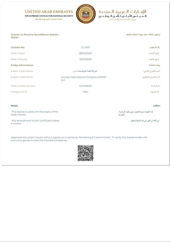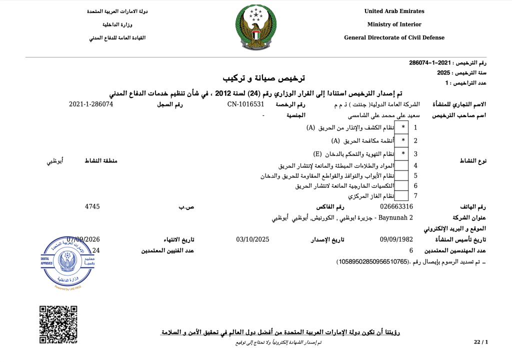 Our Achievements & Certifications range from one achieved locally to internationally.  SIRA, ADMCC, Dubai Police, Civil Defense, NFPA, ISO 9001, and Approved Supplier & Service provider for several companies.