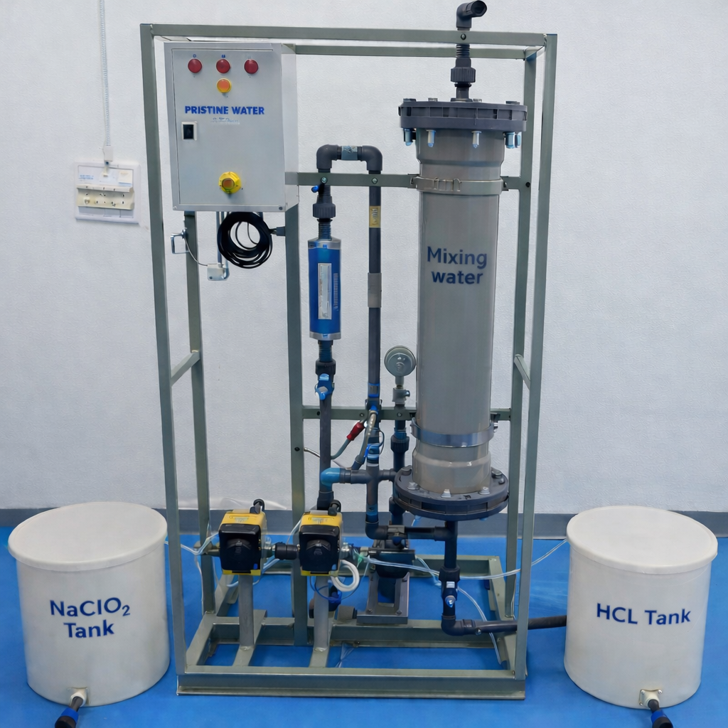 Chlorine dioxide is a practical, cost-efficient, and environment-friendly disinfectant that requires a generator to be applied. Water Guard`s ClO2 generator, is designed to assure a high level of conversion efficiency, safe and continuous operations.